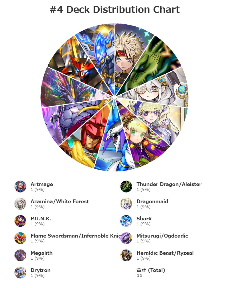 | 4 | カードパックムキ太郎 | Flame Swordsman/Infernoble Knight | 2-1-1 | 7 | 55.6 |