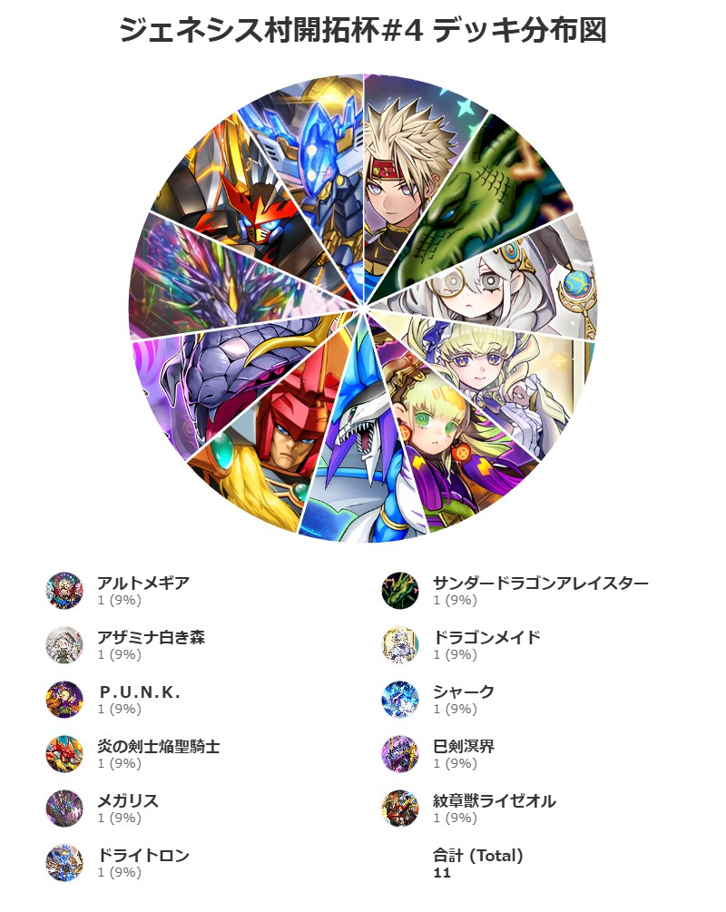 | 4 | カードパックムキ太郎 | 炎の剣士焔聖騎士 | 2-1-1 | 7 | 55.6 |